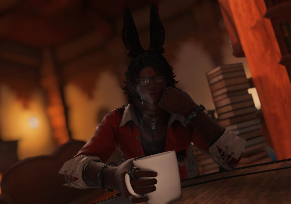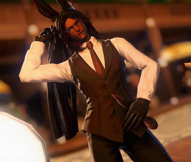 Lio is a Bozjan Rava who was taken into House Roselius as a Knight-In-Training. His job was to make sure Lord Roselius’ Daughter, Eliza would be safe and to be her companion. During the Garlean push into the Bozjan lands Lord Roselius would tell him to take Eliza and to run away from the Fort-town. During the chaos of escaping towns folk, a Garlean shelling would separate the two and throw Lio into the ocean to be swept away with the tides.The Waves That Rock You To SleepNormally that’s where the story would end. But this Viera lad was lucky. He was picked up by a “Shipping Vessel” known as the HMS Starfall and its motley crew as they made their way back to Aldenard. Lio was rather sick from being at sea for Hydaelyn knows how long, so the less than savory crew, made a more than savory option and made land to rush the boy to Gridania. This small token of humanity granted Lio a second chance at Life.It Takes a VillageThis second chance at life was not wasted. He spent his days both running errands around Gridania for the crew as well as for the people of the town. “Could you take this letter?”, “Mind takin’ these boxes there yonder?”, “Mind fetching me a drink?”. All these small questions would lead to Lio’s first true transporting job: The Gridanian Delivery Boy. With his small job he would be able to show his commitment to speed, efficiency and most of all fun.The Farthest From the Shroud He’s Ever BeenFast Forward a few decades. Lio set his sights beyond the green of the Shroud and began taking jobs that would take him all over Aldenard:When the Dragonsong War was going on, the Machinist Guild and the Smiths of The Foundation required materials to craft Dragonslaying Weapons in the effort to defend the people. This event is when he learned to love Hot Cocoa so much. He had no idea that Coerthas would be so bone-chillingly cold.During the Gyr Abanian Invasion, memories of his home being invaded pushed him to assist them in whatever way he could. Joining the Eorzean Alliance as a Convoy and Transportation specialist, he led several supply groups across the Gyr Abanian front as well as transporting goods for the Scions of the Seventh Dawn to their efforts in Hingashi, Doma and The Steppe. When his efforts were needed he stepped forward as a Rear Guard for evacuating civilians from dangerous areas.Bozja: A Place That Is HomeSoon enough Lio would find himself jumping head first into the next Resistance Movement.It was time to go home.The Bozjan incident was Lio’s time to stop worrying about Gil, and to start worrying about the land of his people. Hand in hand with his flesh and blood he would charge the Bozjan Southern Front to take back the land that was his lady’s birthright. He would go as far as to emulate the Blades of Gunhildr and assume the Power of the Queen to claw back his homeland from the Garleans, one step at a time.When push came to shove, he chose not to fight in the Garlemald Event. He went to perform a similar role to what he had in the Gyr Abanian Event. He returned to Transport and Public Aide to the Alliance Forces, but most importantly to the Garleans.The innocents weren’t the ones that burned down his home.Through non-violent terms, he would perform interception and sabotage on the remaining Garlean Forces. Stealing their Ceruleum en masse for the Alliance at Camp Broken Glass to warm the forces and refugees waiting there. His attacks on the Loyalist Garleans, if you can call them that, stained his jacket in a glowing blue residue. When people would see him and his steed Xi, he would glow amongst the darkness of a winterscape: A glowing beacon. This is what would provide him the title of “Cobalt Star”.The Setting of the SunAfter all was said and done. He’d take himself back to Aldenard to find a life of normalcy. His life had been exciting up until that point, non-stop. He felt that he deserved a break. He now works odd jobs through the land, but his common contract is for that of a bar named, “The Marionette”.If someone needs him, they’ll come find him.