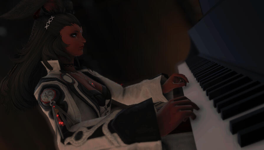 Intro - Soft KeysQuietly, in a small corner of Ul’dah, a piano played along to the silence of The Marionette. A tall slender figure was trapped behind the bar, serving drinks and cleaning glasses. It was a shit job, and the gil was never worth it… But the contacts always were.